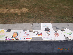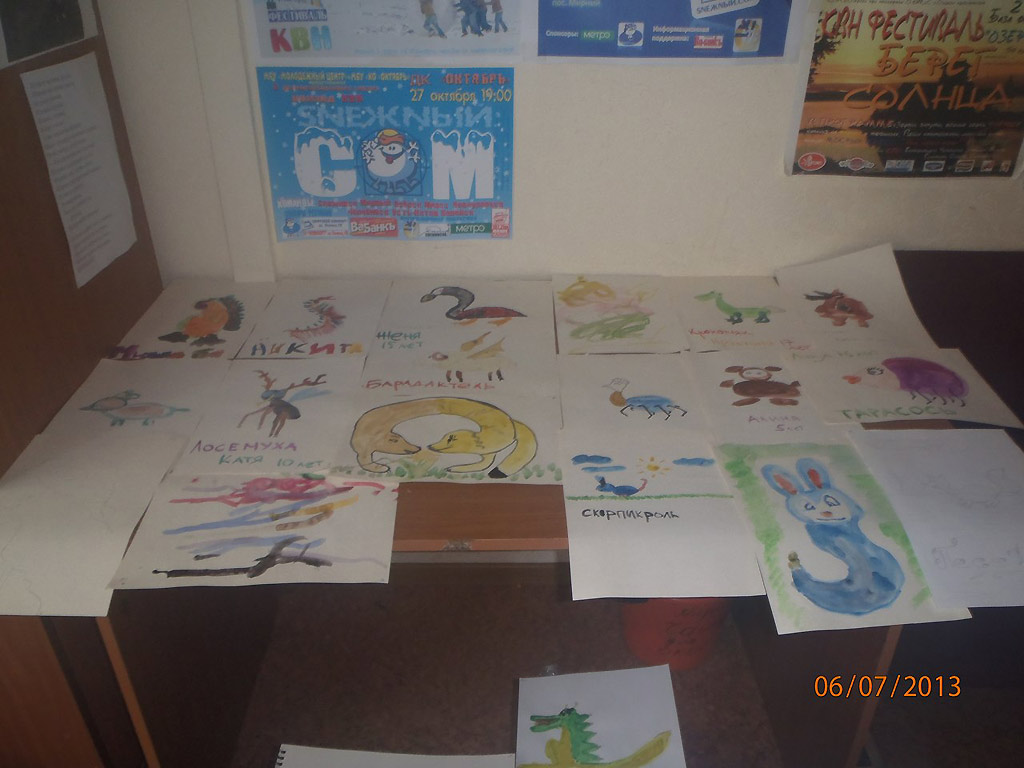 Предлагалось изобразить несуществующее животное, которое вытягивали наугад. Из 32 рисунков тут же делали выставку, а по итогам конкурса определили двух победителей - это Ольга, автор портрета ЛосеМухи, и Юрий с портретом Песедры.