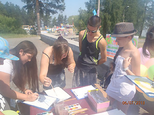 Яркие плакаты, воздушные шары, краски и кисточки, а главное -улыбчивые лица встречали горожан на входе в парк с 12 до 14 часов.