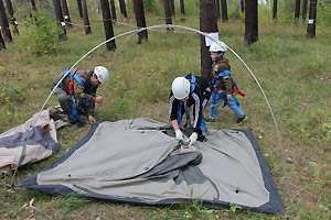 На старт вышло шесть семей. Дистанция была представлена этапами из спортивного туризма, такими как переправа по бревну, через болото, параллельная переправа, вязка узлов, определение азимута на ориентир и установка палатки.