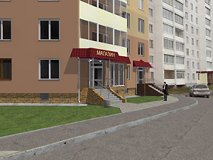 3. Эскизный проект объекта: ул. 40 лет Октября, д. 4 «Организация входной группы в магазин непродовольственных товаров» (заказчик – А. Н. Корочкин).