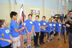 Хозяева, ученики школы, тепло встречали гостей из МБС(К)ОУ №128, МБДОУ №26, представителей Молодёжной палаты. Настоящим сюрпризом стало появление на празднике чемпионки России по триатлону, кандидата в сборную России в паралимпийских играх Елизаветы Шашкиной. Лиза принесла с собой факел, который она пронесла по улицам Челябинска 17 декабря. Все желающие могли сфотографироваться на память с символом сочинской Олимпиады.