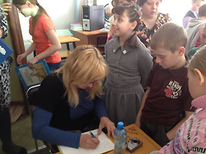 На встречу с гостьей пришли много ребят. Светлана Аркадьевна рассказала о своей работе (она врач-нейрофизиолог, доктор медицинских наук), представила наиболее известных героев своих произведений, сказав, что все ее герои – прототипы из реальной жизни, зачитала отрывок из своей новоизданной книги «Куда скачет петушистая лошадь». Все это сопровождалось яркой презентацией.