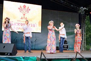 Три дня под ласковым и ясным небом близ города Снежинска пел, танцевал, рассказывал XXII всероссийский Бажовский фестиваль. Словно сказочно красивый узорчатый платок накрыл он обширную территорию санатория «Сунгуль», радуя и завораживая неиссякаемым народным творчеством.