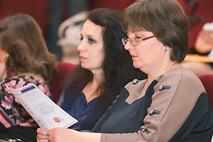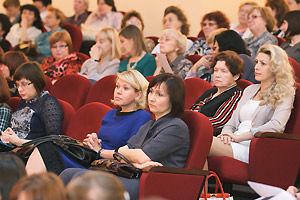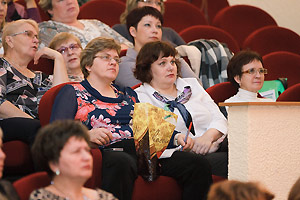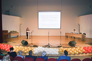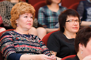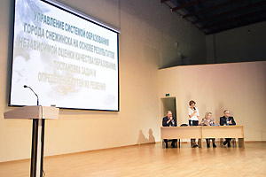 Затем перед педагогическим сообществом выступила начальник управления образования Снежинска Г. Г. Еремеева. В своём докладе она также отметила роль муниципалитета в привлечении молодых педагогических кадров. Впервые за много лет управлению образования сразу выделили 12 служебных квартир, благодаря чему смогли решить жилищную проблему 16 педагогов.