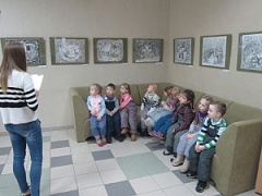 На выставке уже побывали ребята из детского сада. Малыши смогли ознакомиться с такими понятиями, как графика, иллюстрация, посмотреть мультфильм и поразгадывать загадки.