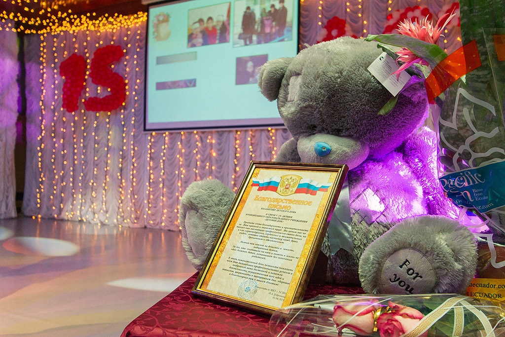 Танцевальный зал «Ритм» гостеприимно распахнул двери для проведения торжества. Воспитанников и коллектив детского дома, гостей праздника приветствовал заместитель главы Снежинского городского округа О. П. Карпов. Теплые слова поздравлений и подарки получил детский дом от председателя городского профсоюза Л. Г. Пановой, начальника управления социальной защиты населения О. А. Дубровиной, начальника ОМВД по г. Снежинску Р. Р. Сафина, от многочисленных коллег из образовательных учреждений города, от представителей попечительского совета детского дома, от приемной семьи Николаевых.