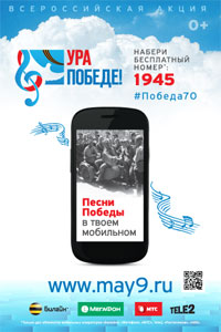 - установить в качестве гудка своего телефона одну из мелодий песен военных лет и подключиться к мобильному сериалу «Этот День Победы», позвонив на бесплатный номер 1945;