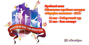 Приглашаем всех желающих принять участие в отборочном туре городского этапа областного народного конкурса «Марафон талантов-2015», который состоится 12 мая 2015 года, в 16.00 часов, на большой сцене ДК «Октябрь».