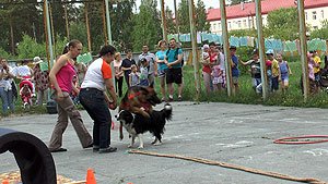 Порадовала и удивила своим сюрпризом собравшуюся детвору снежинская общественная организация «Бумеранг добра», которая организовала игровую деятельность ребят со специально обученными собаками.