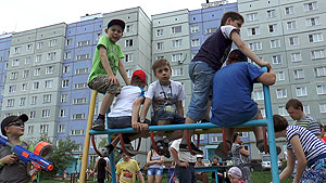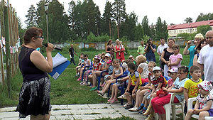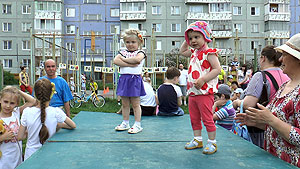 Детские праздники для этого избирательного округа вот уже пять лет традиционно проходят 1 июня, 1 сентября и в новогодние каникулы. На сей раз, в связи с проведением строительных работ по организации сквера для горожан (с установкой спортивных тренажеров и игрового комплекса), праздник проходил не во дворах по ул. Забабахина, 5-7, а на спортивной и игровой площадках по ул. Забабахина, 11-13.