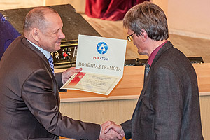 Вначале первый заместитель генерального директора – директор Дирекции по ядерному оружейному комплексу Госкорпорации "Росатом" И. М. Каменских и глава города Снежинска А. Н. Тимошенков вручили ряд государственных и ведомственных наград сотрудникам РФЯЦ – ВНИИТФ.