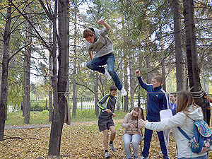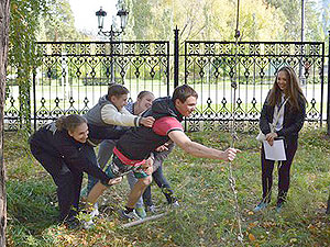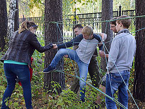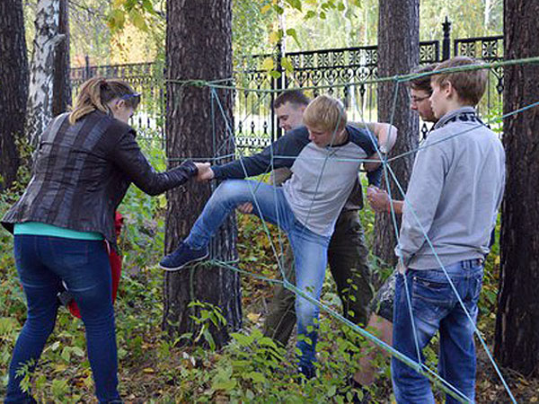 Названия испытаний – «Лабиринт», «Паутина», «Предел» – говорят сами за себя. Совершить переходы с завязанными глазами, преодолеть переправы с помощью веревки и страховки, а препятствия только всем вместе – вот задания, с которым пришлось столкнуться неопытным первокурсникам. Теперь-то, конечно, справиться с последним этапом Посвящения – представлением визитных карточек групп – им уже не составит никакого труда. И да помогут вам кураторы!